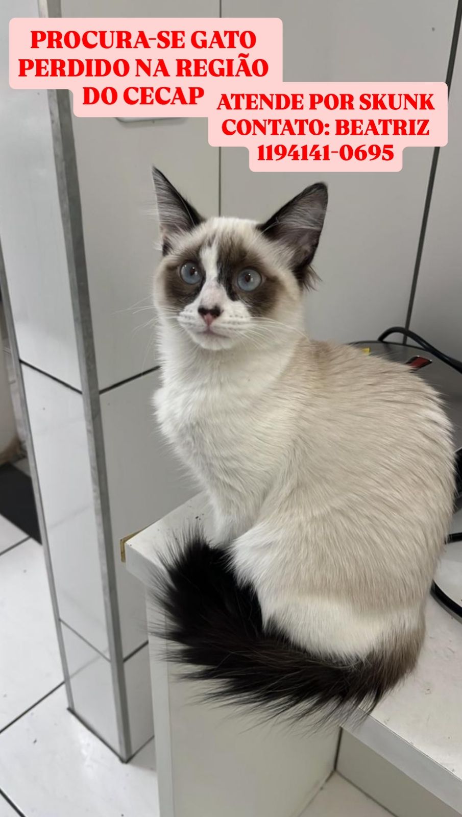 Características: Manchas parecidas com máscara escura envolta dos olhos e olhos azuis.
